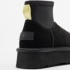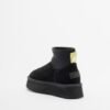 Black suede platform boots with a flexible nylon shaft and fur lining.