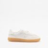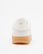 Tommy Hilfiger women’s low-top sneakers. White suede upper with leather detail at the heel and 3D monogram on the side.