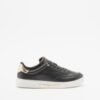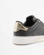 Black sneakers in smooth leather with gold detailing on the heel. Metal plate on the midsole with engraved Tommy Hilfiger logo.