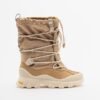 Beige waterproof boots with adjustable shaft and crisscross laces. Equipped with an inner boot lined with UGGplush™.
