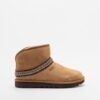 UGG ankle boots made from camel suede with a fur lining. Features the brand logo and contrasting stripe with a “zig-zag” effect.