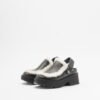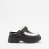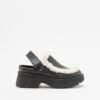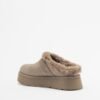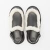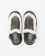UGG platform clogs in soft leather with sheepskin trim, Velcro strap at the heel and embossed UGG logo on the back.