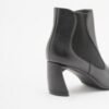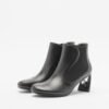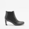 Black United Nude ankle boots with smooth leather uppers. Rounded toe and curved heel with silver detailing.