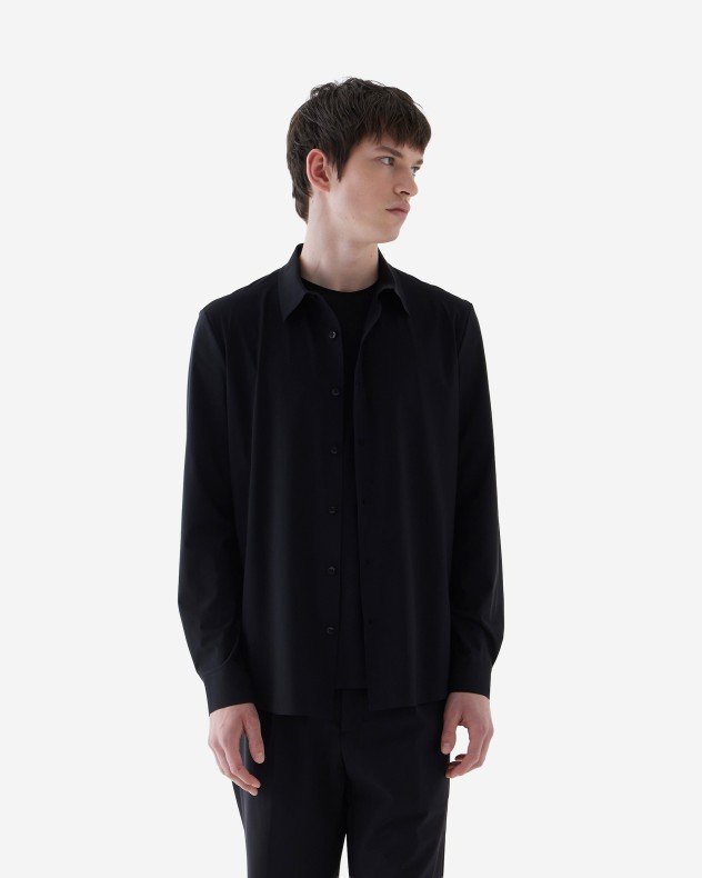 Black long-sleeved shirt in stretch fabric that combines comfort, elasticity, and a sophisticated finish.
