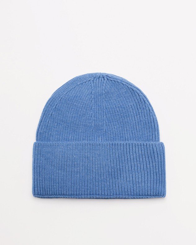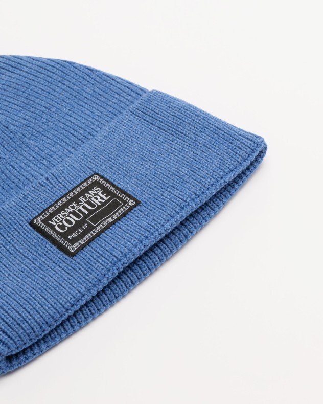 Versace Jeans Couture blue beanie with contrasting logo patch detail.