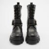 Black boots from Versace Jeans Couture with a baroque buckle on the side.