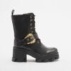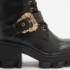 Black boots from Versace Jeans Couture with a baroque buckle on the side.