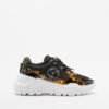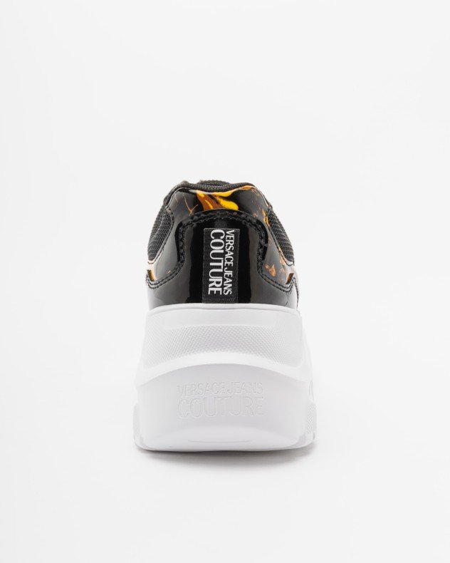 Black women’s sneakers with a chunky, high sole. Mesh upper with signature Versace Couture details.