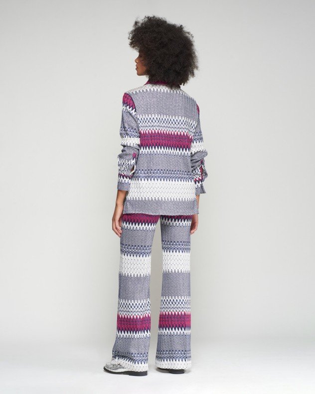 Multicolored high-waisted knit pants with a zigzag print.