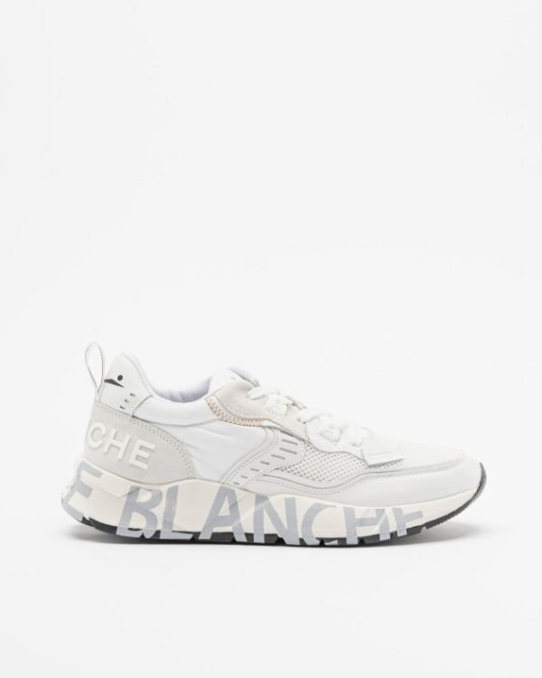White trainers by Voile Blanche crafted in a mix of materials. Exclusive details and printed edge with screen-printed logo.