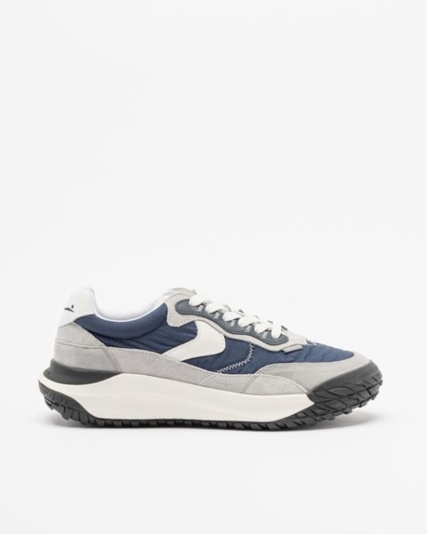 Blue trainers by Voile Blanche in nylon fabric, leather and suede with contrasting details. High rubber sole and exclusive printed detail on the heel.