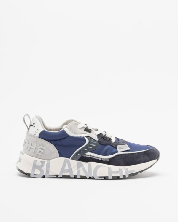 Blue trainers by Voile Blanche developed in technical fabric, leather and suede. Silver details and printed edge with screen-printed logo.