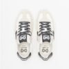 White synthetic leather sneakers with contrasting details. Rugged rubber sole and ID. Eight logo on the side.