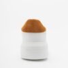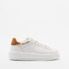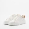 White flats in smooth leather with camel details. Two-tone laces and a printed Love Moschino logo on the side.