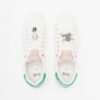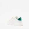 White sneakers in synthetic leather with metallic blue detailing on the heel and shiny applications on the laces.